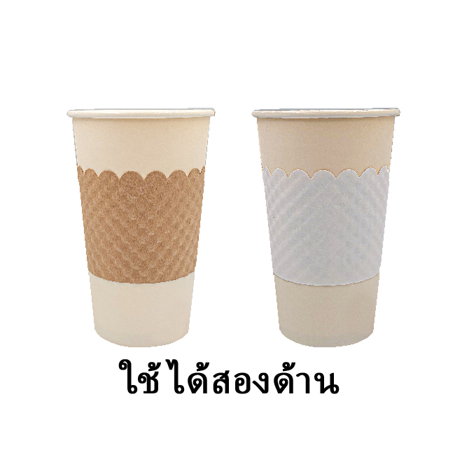 Cup Sleeve. Excellent tensile and tearing strength. The sleeve size can be adjusted up to 3 levels. Able to be used for both hot and cold drinks.