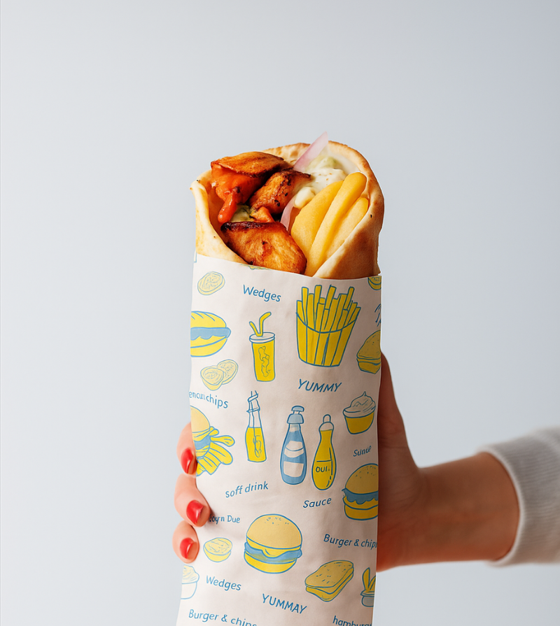 ใช้สำหรับห่อแฮมเบอร์เกอร์ แซนวิช ข้าวมันไก่ และอาหาร takeaway