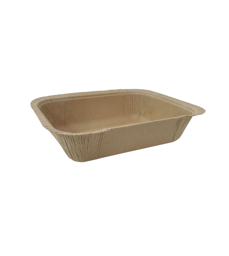 ถาดกระดาษบรรจุอาหาร ผลิตจากกระดาษปราศจากสารเคมีที่เป็นอันตรายต่อผู้บริโภค ทนต่อความเปียกชื้น ไขมันได้ กระดาษชิ้นเดียวขึ้นรูปเป็นทรงถาด ไร้รอยต่อ ป้องกันการรั่วซึมของอาหารได้